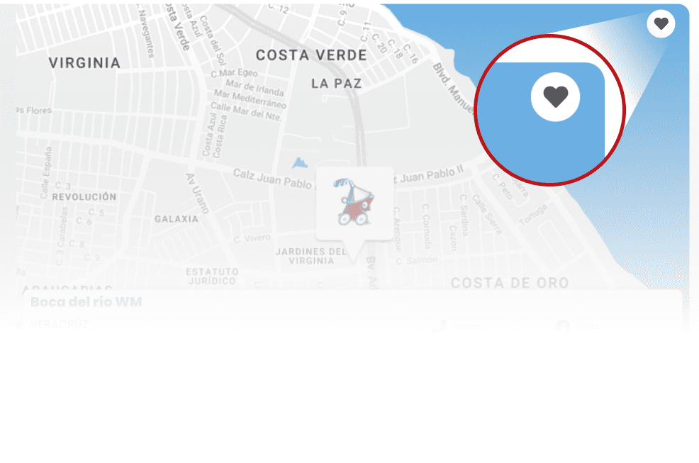 En cada uno de los centros de servicio encontrarás un ícono de corazón como el de la imagen siguiente que te permitirá añadir un centro a tu lista de favoritos.